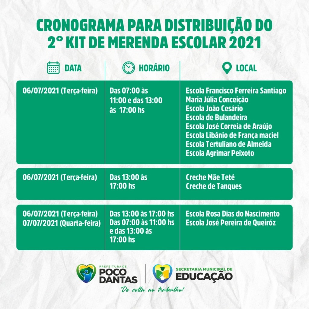 A prefeitura Municipal de Poço Dantas, através da Secretaria Municipal de Educação, vai promover a segunda distribuição de kits de gêneros alimentícios, neste ano de 2021, para alunos regularmente matriculados das escolas e creches do município. Ao todo, 1.200 alunos da rede municipal serão contemplados pela ação.